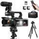 4K Videokamera Profesjonell 60FPS for Filmproduksjon, Film & Fotografering, Videokamera med 18X Zoom, Digitalkamera for Videoopptak, 4-tommers Flip Touchskjerm, Lette Stativer, 64GB, Kentfaith