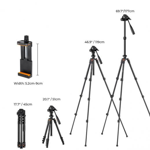 - * Mange tilbehør – Arbeid rett ut av esken-Kentfaith UHD profesjonell videokamera med bærbar håndstabilisator forbedrer bilde- og videostabilitet. Håndstabilisatoren er også utstyrt med en zoomknapp og en opptaksknapp for enkel opptak av lavvinklede videoer eller bilder; opptak blir enklere og mer problemfritt. 70"/1,77m lette aluminiumstativ for fotografering og direktesending.