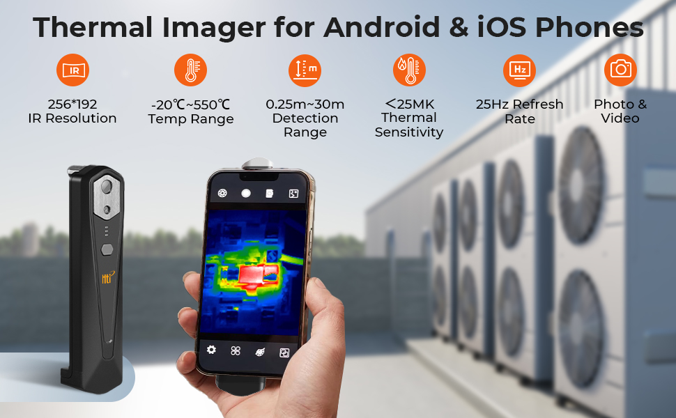 - * ¶Umatchet terminalklasse og presisjon} Takket være den avanserte 256x192 IR-sensoren (12μm piksel pitch) og <50 mK NETD-oppløsning, gir vårt termiske kamera til mobilkrystallklare bilder med spesielle detaljer. En glatt 25Hz friskhetsrate sikrer væskeutseende, mens den brede - 4 °F til 1022 °F-temperaturområde og 0,1 °C-sensitivitet kan måle nøyaktig for selv de minste variasjonene.