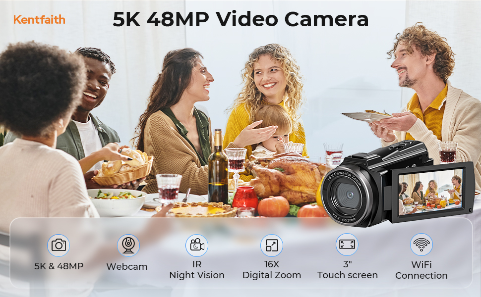 - * 5K 48MP Videokamera: Denne videokameraen gir utmerket videokvalitet og tilbyr en rekke oppløsningsalternativer, inkludert 5K, 4K, 2.7K, 1080P. Den har opptil 48MP bildeoppløsning og 16X digital zoom, slik at du enkelt kan ta fantastiske landskapsbilder. Den er kompatibel med 4-256G SD-kort (Merk: 32G SD-kort inkludert) og 1/4" standardstativ, noe som gjør den til et ideelt valg for videofans.
