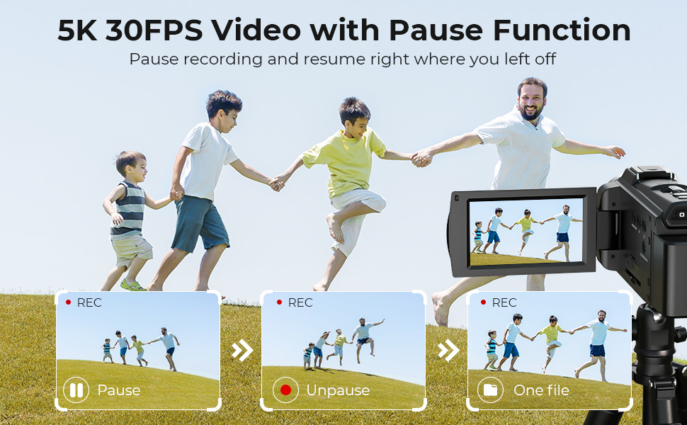 Fang imponerende ultra-HD 5K-videoer, og bevar hver eneste detalj i krystallklar oppløsning. I tillegg lar pause-funksjonen deg sette opptaket på pause uten å lage en ny fil, slik at du sparer lagringsplass og sikrer at hvert øyeblikk som blir tatt opp, teller.