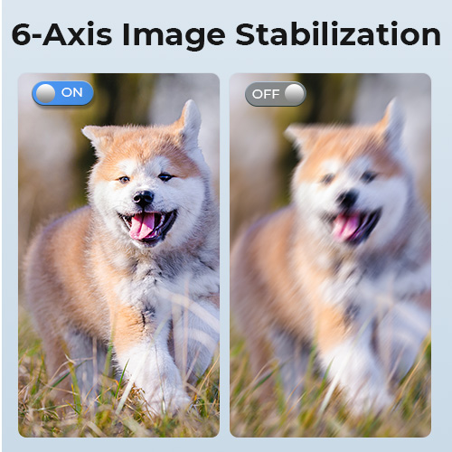Enten du står på ski, skateboard, surfing eller terrengsykkel, holder 6-aksels bildestabilisering opptakene dine stabile og uten uskarphet. Ikke mer skuffende uskarpe bilder eller videoer med kameraet vårt – bare skarpe, klare bilder fra reisen din.