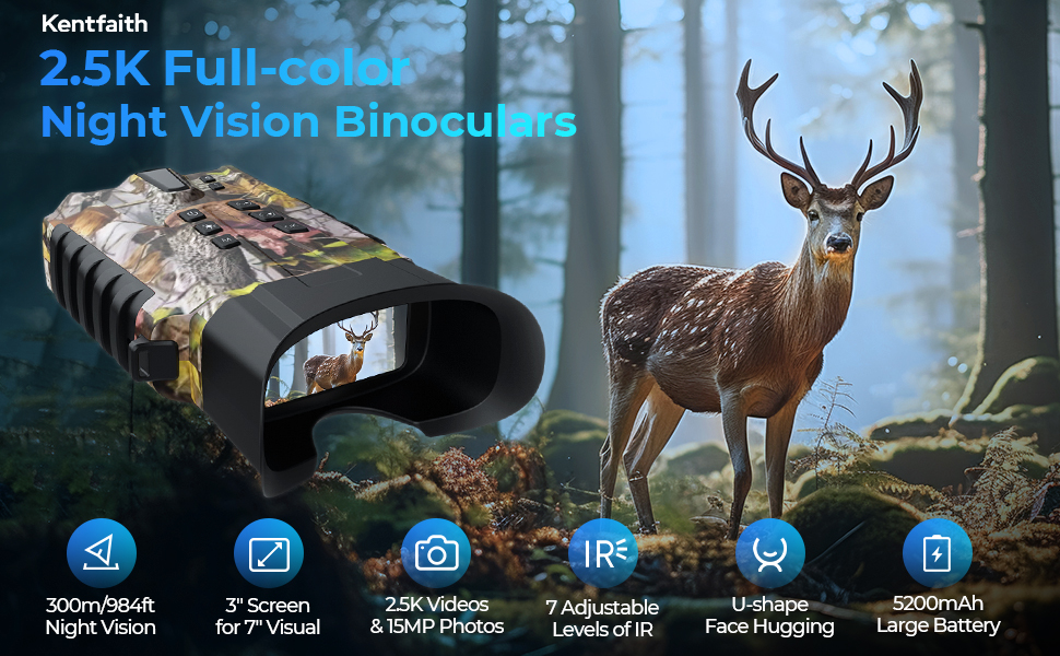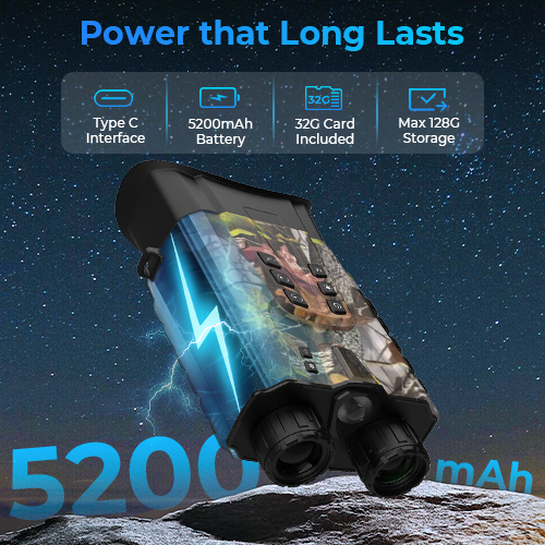 - * 2,5K videoer og gjenoppnåelig 5200mAh Batteri-vårt nattsyn-goggler for å jakte featurerer et høypiksel telefotokamera, du kan skyte krisp 2,5K-video og 15-megapiksel bilder med bare ett klikk. Et 32GB minnekort er inkludert, så du er klar til å rekord alle eventyrene dine. Dessuten, med et stort 5200mA-batteri, vil du ha mye juice for de lange kveldene ute.