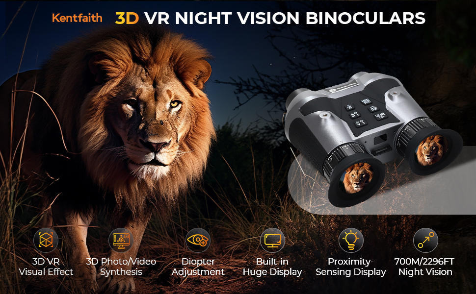 Hodemontert nattkikkert 3D VR 700M/2296FT 6X Zoom Kentfaith