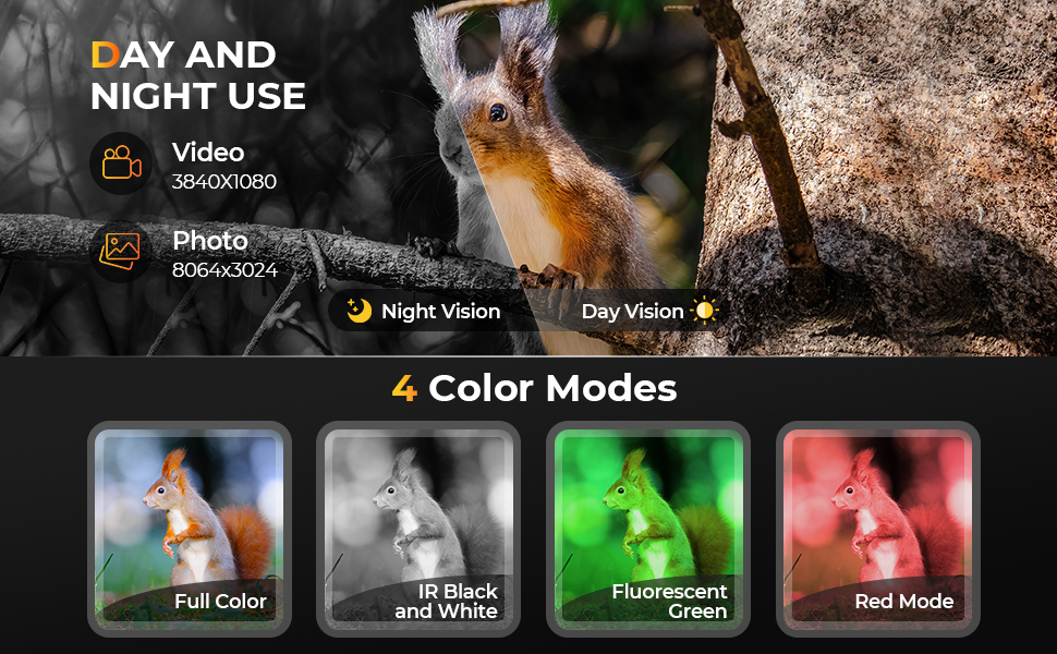 VR-synskålene våre tar utrolige bilder med opptil 8064 x 3024 og filmer opptil 3840 x 1080 - for å sikre at hver detalj er skarp og vid. Pluss, ikke bare nattsyngoggler, de er også til dags bruk. Perfekt for dyrebeskytning, jakt, tur, camping, fuglevakt, sportspill, konserter og mer.