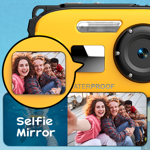 Si "cheese"! Den vanntette digitale kameraet har et selvportrettspeil på forsiden, noe som gjør det morsomt og enkelt for barn å fange det perfekte smilet. Enten de poserer med venner eller lager morsomme fjes, vil de elske å ta selvsikre selfier hver gang.