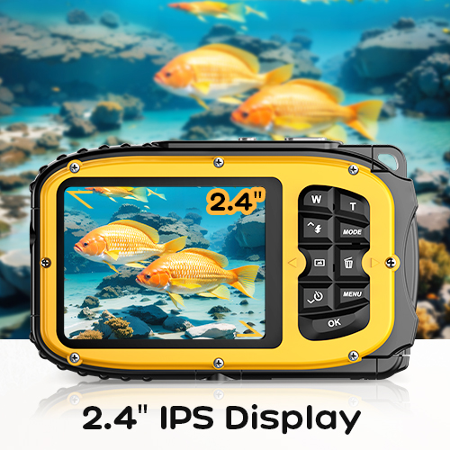 Med et klart 2,4-tommers IPS-skjerm lar det undervannskameraet for snorkeling barnet ditt raskt forhåndsvise og gjennomgå bildene og videoene sine, noe som gjør det enkelt å fange den perfekte vinkelen hver gang. Morsomt, enkelt og klart for ditt beste bilde—si saus!