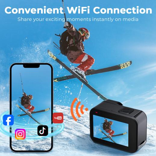 - Klar til å forvandle eventyr til historier? 4K 60FPS vannfast actionkamera—Dette er ikke bare et kamera, det er din billett til å gjenoppleve spenningen, dele gleden og bevise at de beste øyeblikkene i livet er verdt å fange.
