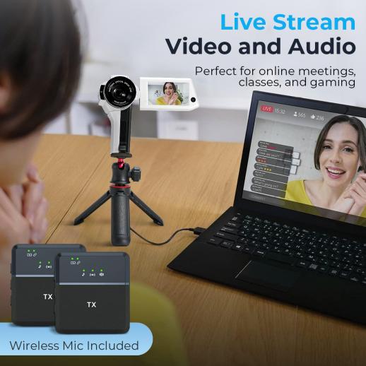 - * Trådløs mikrofon & innebygd LED, forbedre direktesendingen din:Bruk denne videokameraet som et webkamera for YouTube, TikTok, Skype eller Zoom. En kompakt trådløs mikrofon er inkludert for å levere krystallklar lyd, mens den innebygde fyllingslyset sikrer at du alltid skinner, selv under dårlige lysforhold. Ideell for skapere som ønsker profesjonell kvalitet uten den bratte læringskurven.