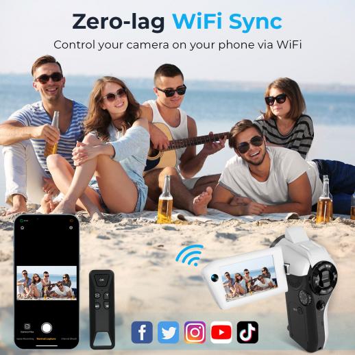 - Koble Kentfaith 5K vlog-kamera til telefonen eller nettbrettet ditt via WiFi. Du kan forhåndsvise opptakene dine direkte, justere innstillinger på farten, ta bilder henderfritt, og viktigst av alt, overføre mesterverkene dine direkte til enheten din. Last opp til Instagram eller YouTube umiddelbart og la følgerne dine være en del av øyeblikket, mens det skjer.