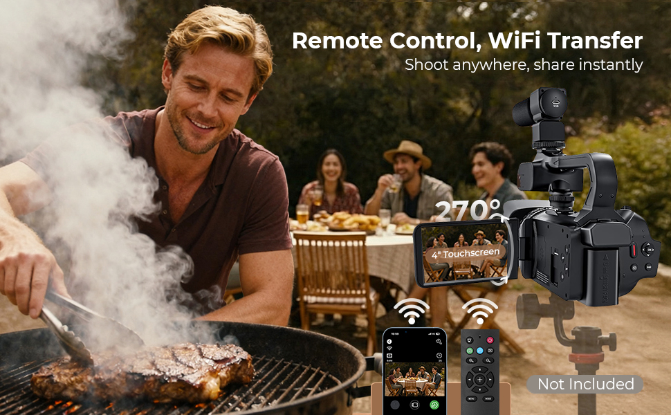 Slip løs kreativiteten din med det 270° flip 4" touchskjerm—perfekt for å ramme inn selvbilder eller ta opptak fra lave vinkler. WiFi-overføring lar deg umiddelbart forhåndsvise og dele høykvalitetsfiler til telefonen din for redigering. I tillegg kan du ta full kontroll med den medfølgende fjernkontrollen for enkeltskudd eller gruppebilder uten anstrengelse. Arbeidsflyten din har nettopp blitt utrolig smidig.