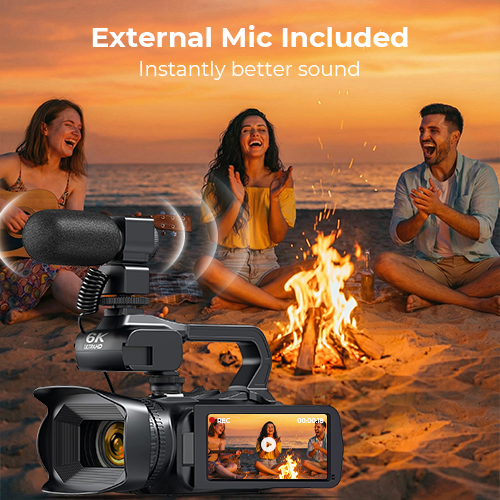 Fang hvert ord med krystallklarhet. Kentfaith 6K videokamera-kit inkluderer en ekstern mikrofon som betydelig forbedrer lyden din ved å redusere vindstøy og omgivelseslyder, og sikrer at stemmen din er ren og tydelig i hver vlogg, intervju og direktesending.