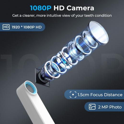 - * Bilder av 2MP HD med 8 lys av LED og et 1080P HD-kamera tilbyr krisp, detaljert 2MP-bilder. Zoom inn for å få en nærmere titt på de små tanncrackene, kavitiettene, matpartiklene og tyggegummiproblemene som hjelper deg å holde smilet i kontroll! (Fokusavstand: 1,5 cm)