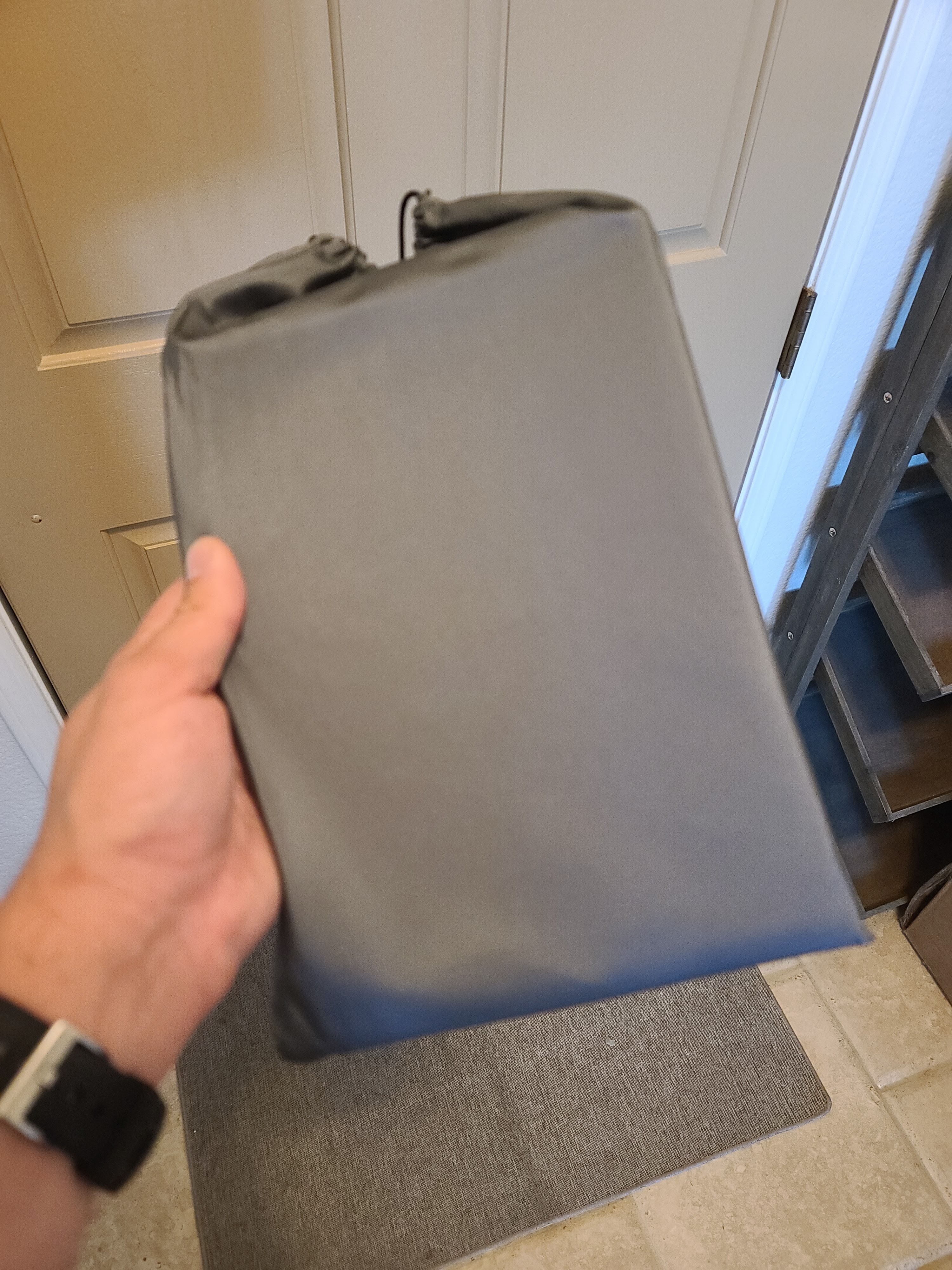 Først syntes jeg matten var for stor, men med litt sidevind er det ikke så lett å lande akkurat på den. Den er enkel å lagre og gir tilstrekkelig stabilitet.