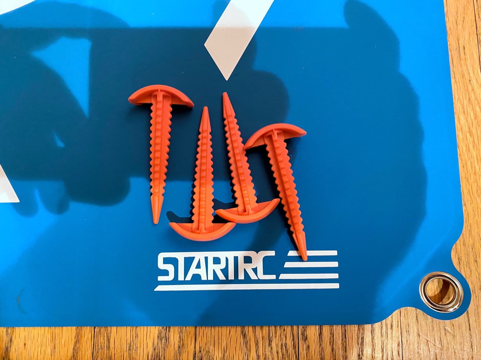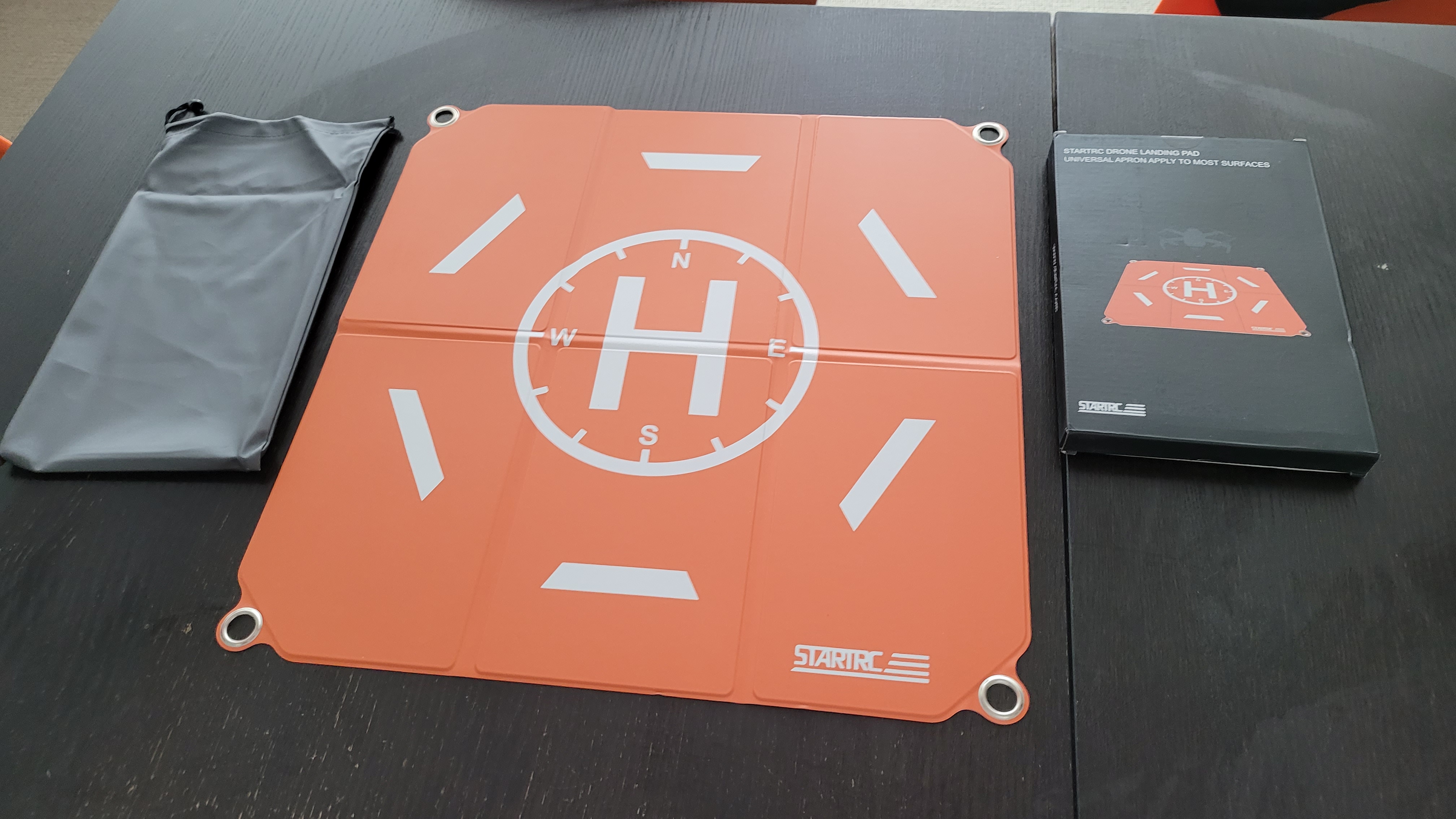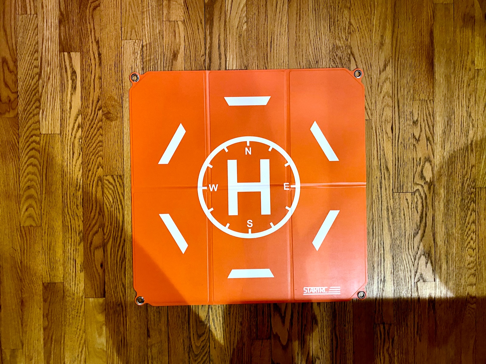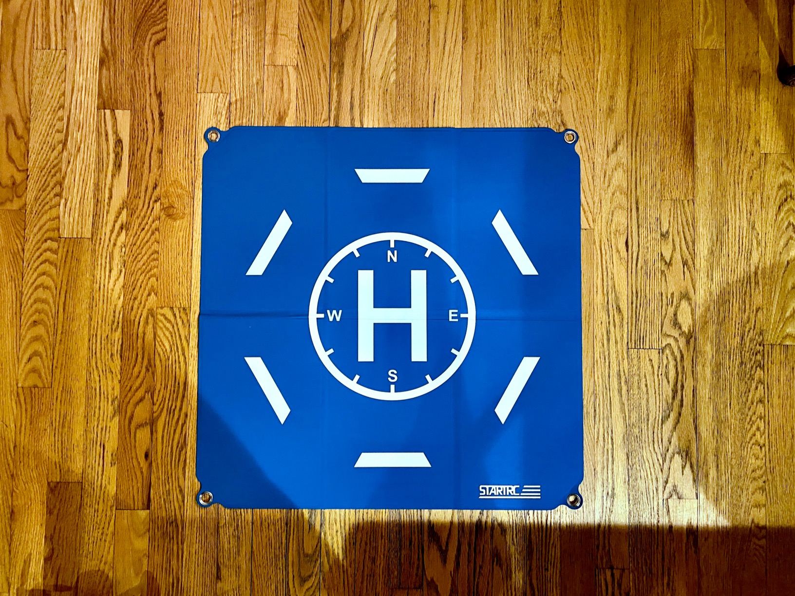 Utmerket materiale og utmerkede farger, godt synlig på avstand, noe som gjør det enda enklere å lande dronen, viktig hvis du vil lande på gress eller sand, lett vaskbar og bærbar, emballasjen inkluderer også 4 plastnåler som du kan gjøre boksen med forankre dronen i dem til bakken, men så langt har jeg ikke trengt dem da de allerede er tunge nok til ikke å fly avgårde i vinden, betalte €15 22. desember, jeg vil si utmerket kjøp