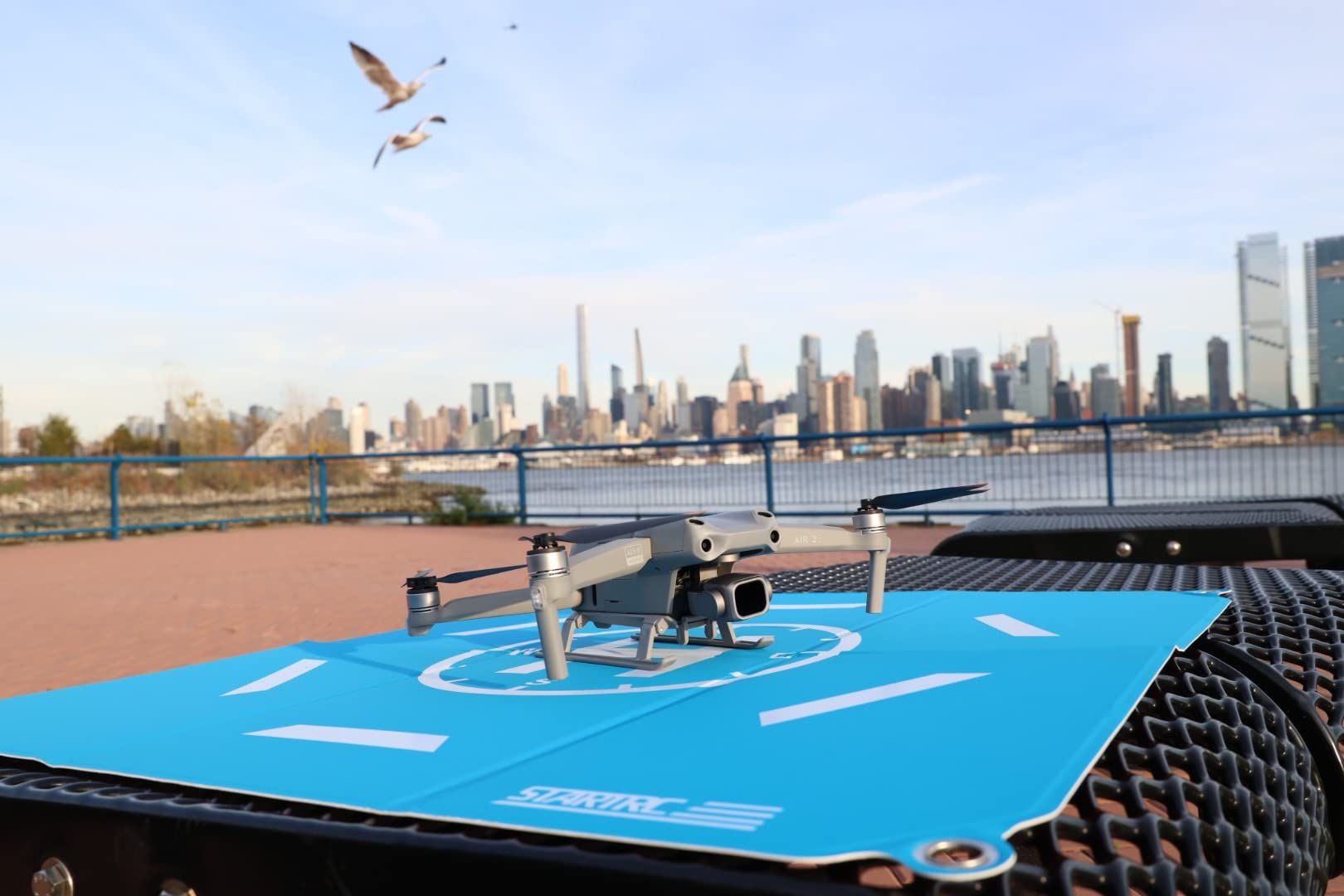 Stiv og sammenleggbar, den tar liten plass i ryggsekken og beskytter dronen mot skitt og støv under start og landing