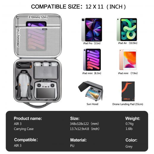 - * Full beskyttelse;) høykvalitet PU med dobbel Lycra-linje gir fullstendig beskyttelse mot eksterne effekter for DJI Air 3 og dets aksjoner mens de reiser eller kjører.