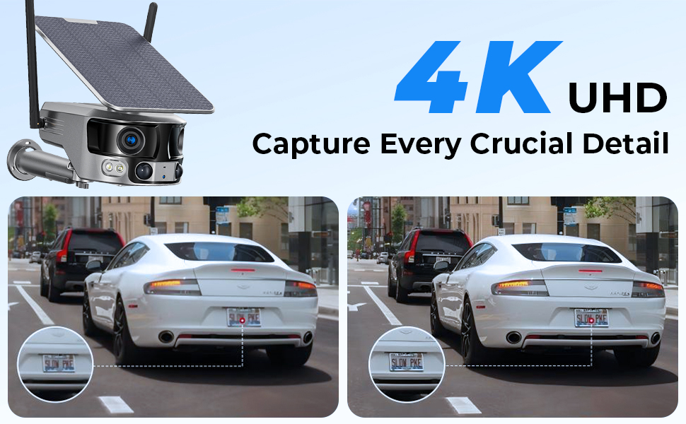 Med sin avanserte 4MP-sensor og kraftige 4X optiske zoom, leverer denne trådløse sikkerhetskameraet 4K-krystallklar opptak. Zoom inn for å fange skarpe ansikter og registreringsskilt på avstand, og få de ubestridelige detaljene som trengs for ekte sikkerhet.
