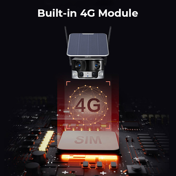 Den avanserte CAT4-modulen sikrer en rask og stabil tilkobling for sanntids, forsinkelsesfri overvåking. Den tilpasser seg automatisk alle 4G-frekvensbånd over hele verden for sømløs global bruk. Bonus! En 4G SIM-kort er inkludert.