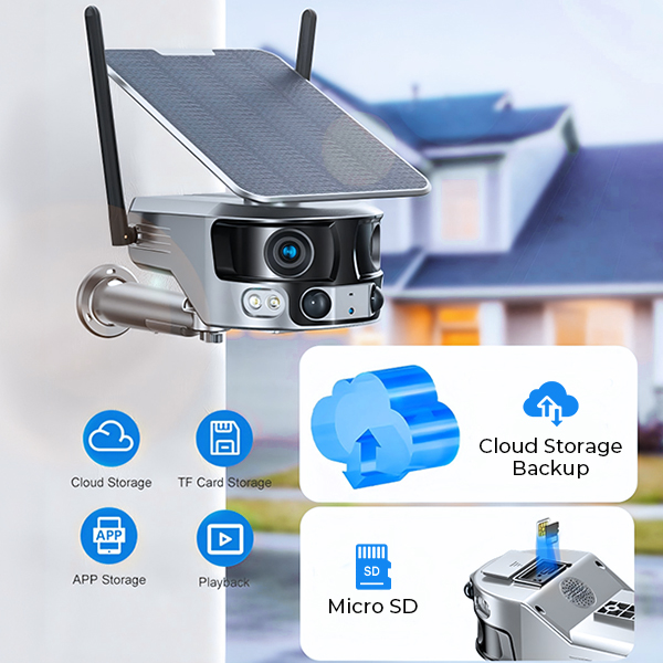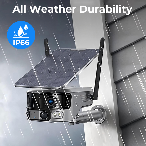 - Total dekning, total frihet! Få en 4K krystallklar, 180° panoramautsikt av eiendommen din med vår trådløse sikkerhetskamera (ikke flere bytter mellom forskjellige linser). Fra gårder til byggeplasser, få enestående sikkerhet, selv der WiFi ikke når.