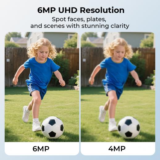 - * 【6MP Ultra HD klarhet, dag og natt】 Den 6MP UHD-kameraet registrerer ansikter, bilskilt og viktige detaljer med utrolig presisjon. Enten det er sollys eller måneskinn, leverer det utendørs overvåkningskameraet fullfarget nattsyn opptil 66 fot (20m) og infrarødt nattsyn opptil 33 fot (10m) – og sikrer eiendommen din døgnet rundt.