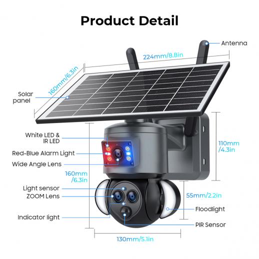 - Trenger du et pålitelig overvåkningskamera der Wi-Fi og strøm ikke er tilgjengelig? Ønsker du full 360° dekning uten blindsoner? Leter du etter et overvåkningskamera som gir klarere og lengre syn? Dette trippellinset overvåkningskameraet er den perfekte løsningen: