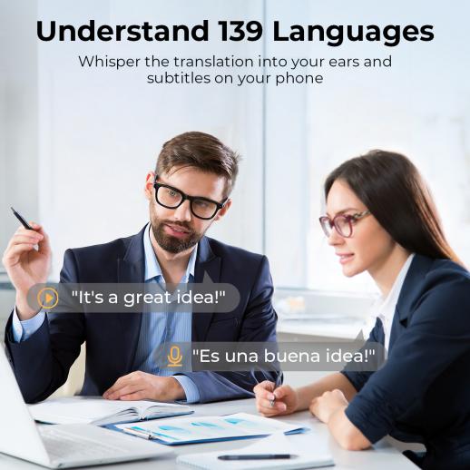 Når du er koblet til HeyCyan-appen, kan du nyte feilfri, sanntidsoversettelser for 139 språk som hviskes direkte i øret ditt. HeyCyan-appen viser live, tospråklige undertekster på telefonen din, slik at du er klar for enhver samtale: de travle markedene, de viktige forretningsmøtene eller de hyggelige pratene med lokalbefolkningen.