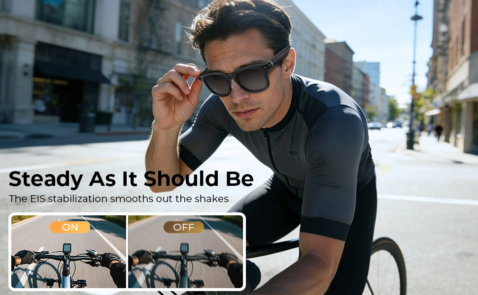 Glem rystede, uanseelige klipp. Våre smartbriller med kamera er bygget for eventyr, med et avansert bevegelsessensor-system som arbeider i harmoni med EIS-stabiliseringsteknologi. Resultatet er en fantastisk klar video som lar minnene dine skinne. Du kan ta opp ditt førstepersonsperspektiv mens du utforsker en ny by, lage dynamiske vlogger på farten eller fange et perfekt, stabilt bilde av barnets første skritt.