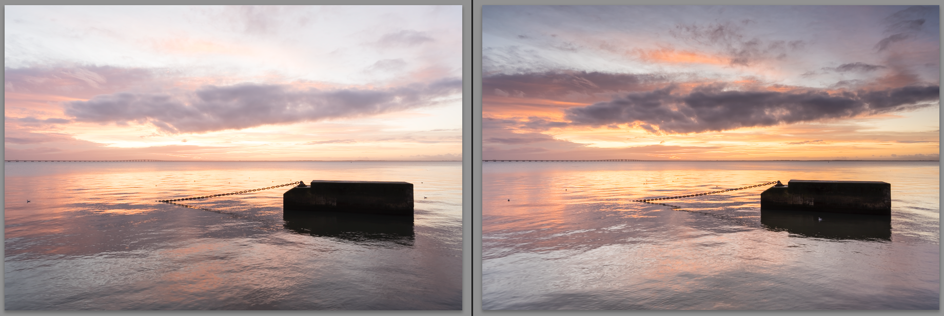 As you can see there is a significant difference in the yellow cast caused by the lights of the city. You also have an increase in the contrast of the image, especially in the areas that were washed out by strong nearby street lights. But you will also notice that you have a more magenta sky. Personally, I prefer the magenta sky over the yellow/green sky. But that is also an easy adjustment in post-processing.