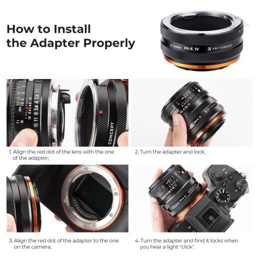 • Høytoleranse, presisjonshåndverk, med denne linseadapteren kan objektivet og kameraet ditt kombineres tett og jevnt med bajonetten, for å oppnå formålet med justerbare og fokuserbare, bringe Pentax K AF-skruefesteobjektivene tilbake til live på Sony E-kameraer .