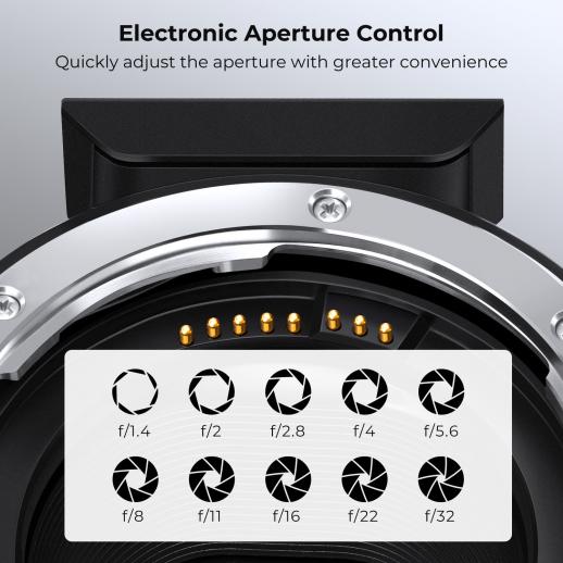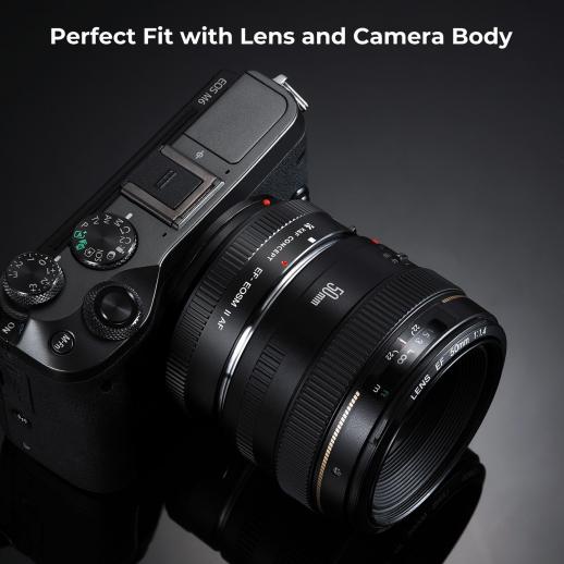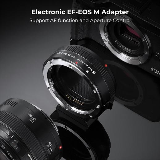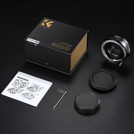 - * Autofokus og blenderåpningskontroll. K&F Concept EF-EOS M-adapter kommer med gullbeleggkontakt, gir høyhastighets autofokus, rask gjenkjenning og nøyaktig bilde.
