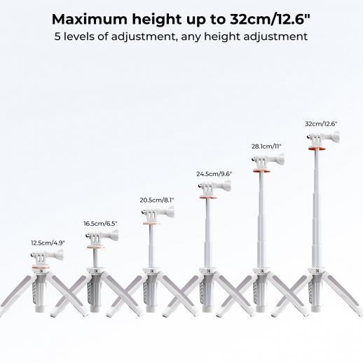 - * Utvidbart GoPro-stativ: Den maksimale høyden er 32 cm, og det støtter 5-delt benjustering, slik at du kan justere ønsket høyde etter eget ønske.