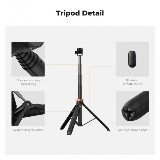 - * 3-i-1 multifunksjonelt Selfie Stick-stativ: Dette stativet er designet for fotografentusiaster, og er kompatibelt med kameraer, lys og telefoner og andre fotografiske produkter. Mens det fokuseres på stativkompatibilitet, har låsesystemet blitt forsterket, grepet har blitt tykkere og gummiføttene er utvidet for å forbedre stabilitet og komfort.