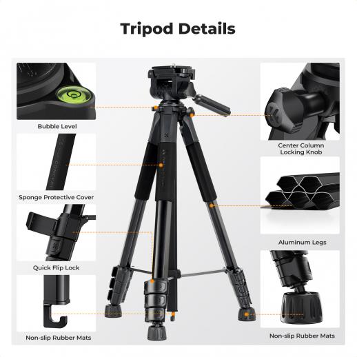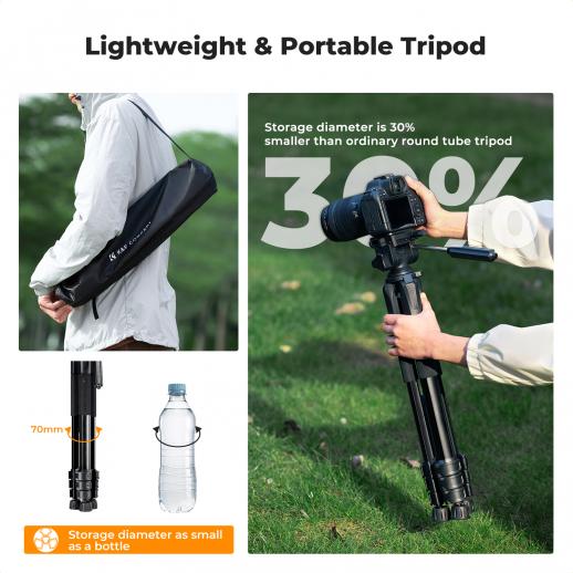 - * Innovativ femkantet rørdesign – Konstruert for stabilitet og portabilitet, har dette lette (1,36 kg) stativet et unikt femkantet rør for økt holdbarhet og enkel sammenlegging. Med en kompakt 48 cm foldet størrelse er den enkel å bære, noe som gjør den ideell for reiser, utendørs fotografering og profesjonell bruk, selv i ulendt terreng.
