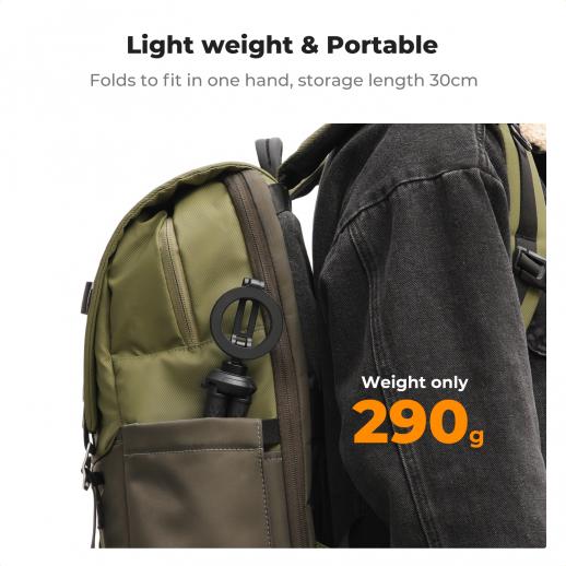 Toppen er 1/4" skrue - med ditt eget tilbehør eller enheter med 1/4 skruehull (for eksempel mobiltelefonklips, påfyllingslys, Pocket, panoramakamera osv.)