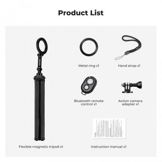 Octopus magnetisk telefonholder Stativ kommer med magnetisk guide, Bluetooth-fjernkontroll, mobiltelefonsnor, GoPro-adapter MS36