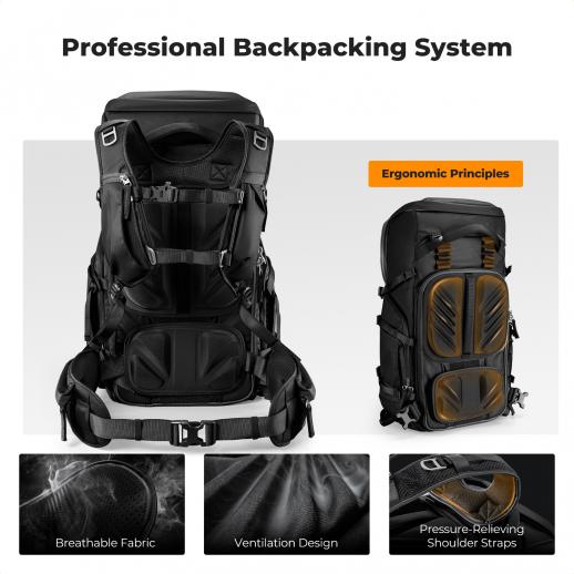 - * 【Profesjonelt bæresystem】Justerbare stropper, korsryggstøtten kan flyttes opp og ned for å justere 4 cm, egnet for forskjellige størrelser og kroppstyper; bredere, tykkere stropper gjør bæringen enklere og mer komfortabel; pustende EVA-rygg som følger menneskekroppens kurver. Avtakbar korsryggpute, pustende belastningsreduksjon, toppen har også to glidelåslommer for oppbevaring av tilbehør.