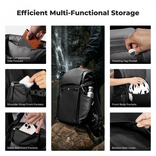 - * 【Tilpassbar oppbevaring】Det øvre rommet har plass til klær, den innerste glidelåslommen kan romme mobiltelefoner, batterier, kabler og annet tilbehør, og det nedre hovedrommet kan romme kameraer, droner og andre gjenstander, og de 8 skilleveggene kan fritt kombineres i henhold til kamerautstyr for å passe ulike behov. Midjelomme, elastisk frontrom, sidelommer, lomme og laptoprom for oppbevaring av multifunksjonelt tilbehør.