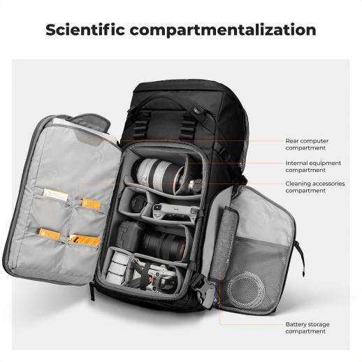 - * 【40L kameraryggsekk med stor kapasitet】Denne 40L-ryggsekken har plass til 2 kameraer og 6 objektiver, og er kompatibel med Sony/Canon/Nikon/DJI DSLR/SLR-kameraer.