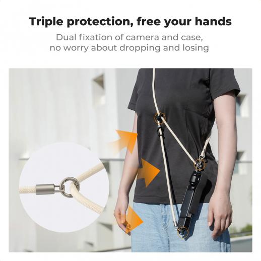 - * 【TRIPPEL BESKYTTELSE OG FRI HENDENE DINE】 Halssnoren gir trippel beskyttelse, inkludert beskyttelse for kamerahus, objektiv og skjerm. Dette dekselet er perfekt for utendørseventyr og beskytter mot riper, støv og utilsiktede fall, slik at du kan filme bekymringsfritt. Dobbelt feste av kamera og deksel, ingen bekymring for å miste det.