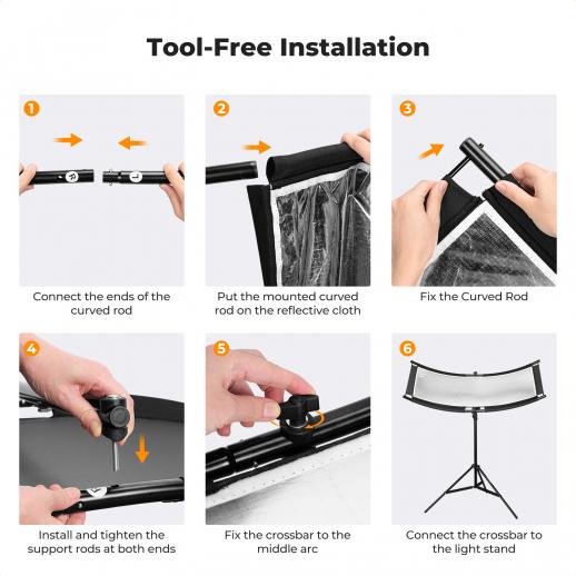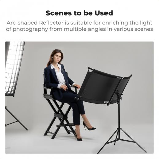- * 【Oversettelse: Buet design】 Den buede reflektoren etterligner krumningen til det menneskelige øyet og reflekterer sirkulært lys, noe som gjør øynene lyse og strålende i portrettfotografering. Den kan eliminere skygger. Stoffet er egnet for strobelys, monolys, LED-lys og til og med naturlig sollys.