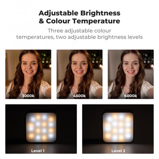K&F Concept Magnetisk Mini-lys for DJI Osmo Pocket 3, 1W USB C Oppladbar Ekstra LED-fyllingsbelysning, Fargetemperatur 3 Nivåer Justerbar 3000K/4500K/6000K, Lysstyrke 2 Nivåer Videolampe