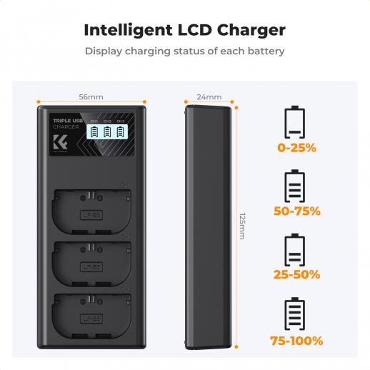 K&F Concept LP-E6NH 3-sporslader, LP-E6 LP-E6N batterilader med LCD-skjerm for Canon EOS R5 R6 R7 5D 6D 7D Mark II-kameraer