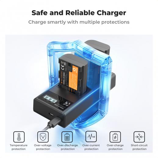 - * 【3-spors LP-E6NH-batterilader】 LP-E6NH-batterihurtigladeren er utstyrt med mikro-USB og Type-C dobbeltgrensesnitt, lader effektivt 3 stk A7iv-batterier samtidig eller uavhengig. Merk: Kun Type-C-kabel er inkludert.
