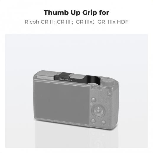 Aluminium blitssko tommelgrep for Ricoh GR II, GR III, GR IIIx, GR IIIx HDF med 2-pakning ultraklar herdet skjermbeskytter