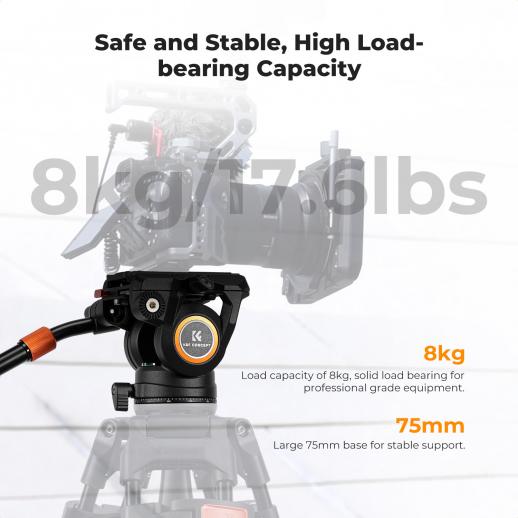 - * 【8 kg lastekapasitet og stabil base】Stativhodet støtter opptil 8 kg profesjonelt utstyr. Den 75 mm brede basen forbedrer stabiliteten og forhindrer vingling under lange opptak, direktestrømming eller utendørsfilming.