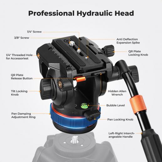 - * 【Produktdetaljer】Væskehodet har en innebygd unbrakonøkkel, justerbart ambidextrous håndtak og antirotasjonspinner – noe som gir profesjonell kontroll med uanstrengt betjening for ethvert skytescenario.