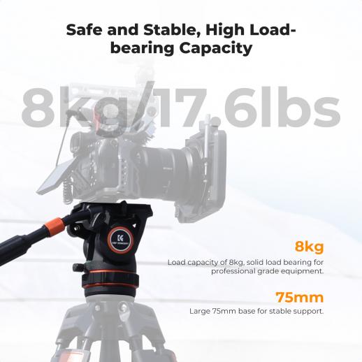 - * 【8 kg lastekapasitet og stabil base】Stativhodet støtter opptil 8 kg profesjonelt utstyr. Den 75 mm brede basen forbedrer stabiliteten og forhindrer vingling under lange opptak, direktestrømming eller utendørsfilming.