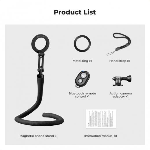 Fleksibel magnetisk mobiltelefonholder, med magnetisk guide, Bluetooth-fjernkontroll, mobiltelefonholder, GoPro-adapter, MS35