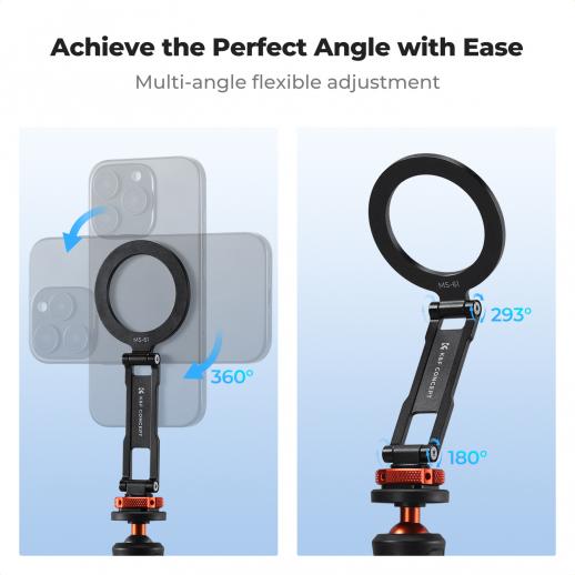 K&F CONCEPT Magnetisk metalltelefonfeste med kaldskofeste, justerbar roterbar telefonholderadapter kompatibel med iPhone 16/15/14/13-serien, kameraovervåking, stativ, stabilisatorer